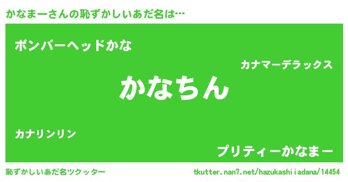 | 意味不明あだ名 | 『永久保存かなまー』『ペロリンかなまー』 |