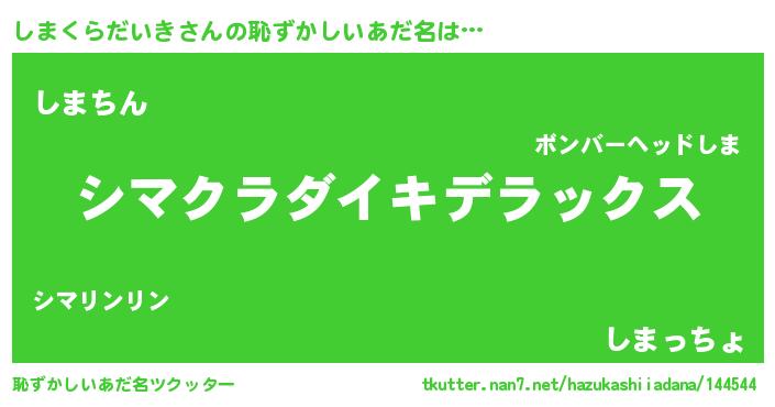 | 意味不明あだ名 | 『自称しまくらだいき』 |