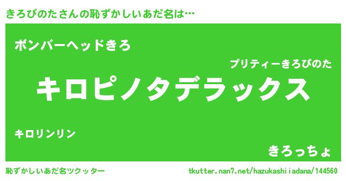 | 男性向けラノベタイトル風あだ名 | 『Re:きろぴのたから始める異世界生活』 |