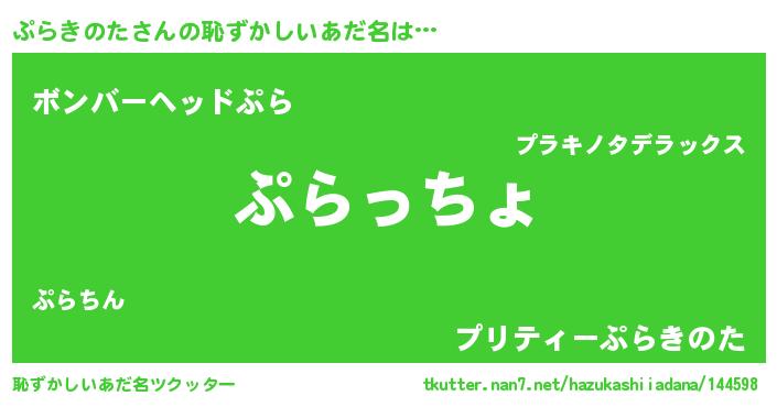 | 意味不明あだ名 | 『ぷらきのたフォーエバー』 |
