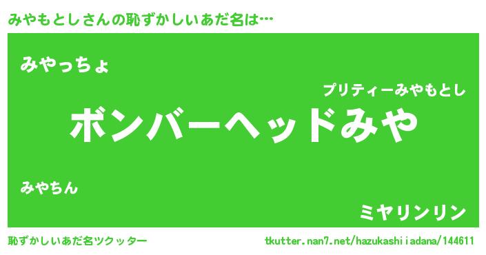 | ヘコむあだ名 | 『つくし』『みやっちょ』『みやにー』 |