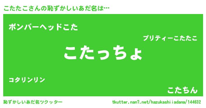 | ヘコむあだ名 | 『つくし』『こたたこ(笑)』『こたを』 |