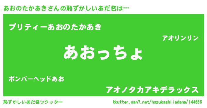 | 意味不明あだ名 | 『めかぶ科あおのたかあき属』 |