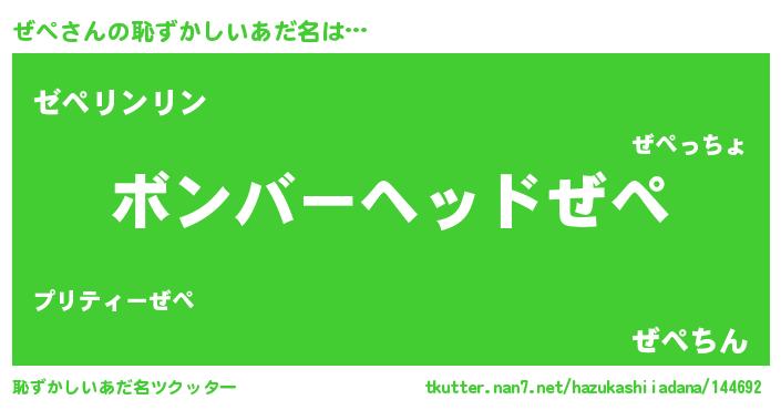 | 男性向けラノベタイトル風あだ名 | 『ノーゲーム・ノーゼペ』『緋弾のゼペ』 |