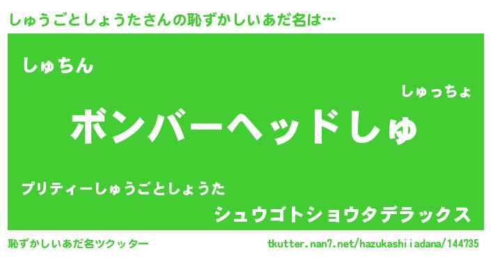| ヘコむあだ名 | 『しゅうごとしょうた(笑)』『つくし』 |