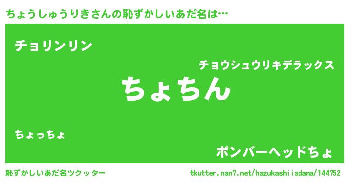 | ヘコむあだ名 | 『ちょうしゅうりき(爆)』『ちょっぺ』 |