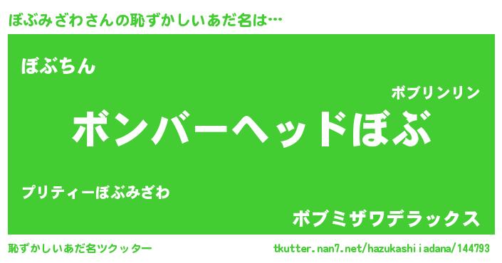 ヘコむあだ名 | 『ぼぶみざわ(遠い目)』『ぼぶっぺ』 |