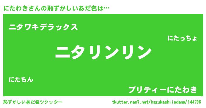 | 男性向けラノベタイトル風あだ名 | 『にたわきの嫁は女の子じゃないと思った?』 |