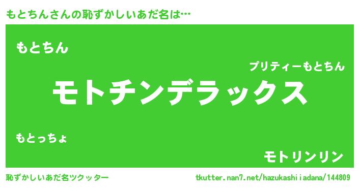 | 男性向けラノベタイトル風あだ名 | 『緋弾のモトチン』『モトチンスレイヤー』 |