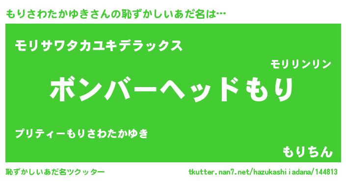 | ヘコむあだ名 | 『もりさわたかゆき(笑)』『もりぷりん』 |