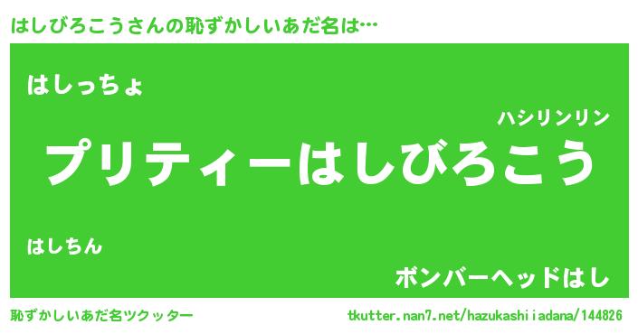 | ヘコむあだ名 | 『はしにゅー』『つくし』『はしお』 |