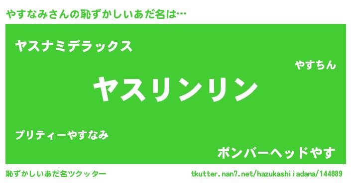 | 意味不明あだ名 | 『とにかく怪しいやすなみ』 |