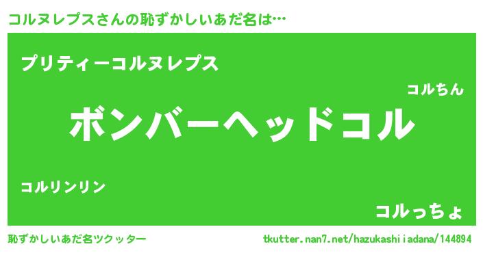 | 男性向けラノベタイトル風あだ名 | 『ノーゲーム・ノーコルヌレプス』 |