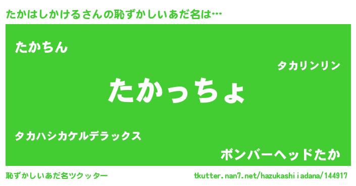 | 女子向けラノベタイトル風あだ名 | 『たかはしかけるの雑貨屋さん』 |