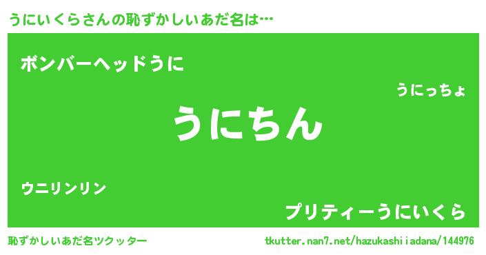 | ヘコむあだ名 | 『うにいくら(小並感)』『うにっふぃ~』 |