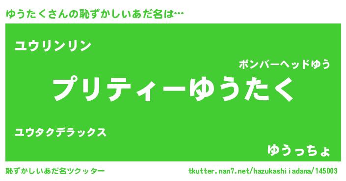 | ヒーロー風カッコイイあだ名 | 『スーパーユウタク』『仮面ユウダー』 |