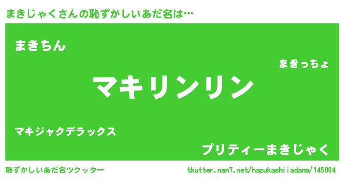 | 男性向けラノベタイトル風あだ名 | 『まきじゃくの嫁は女の子じゃないと思った?』 |