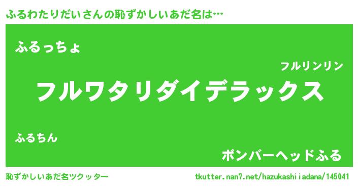 | 男性向けラノベタイトル風あだ名 | 『うちのふるわたりだいが世界を掌握している!』 |