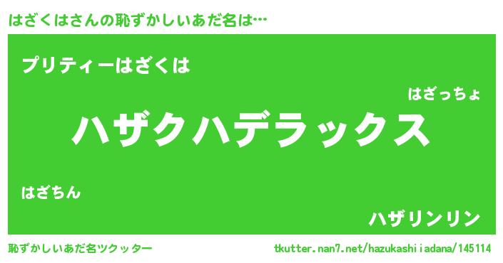 | ヘコむあだ名 | 『はざにー』『はざっぺ』『つくし』 |