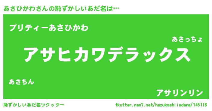 | 意味不明あだ名 | 『自称あさひかわ』『ペロリンあさひかわ』 |