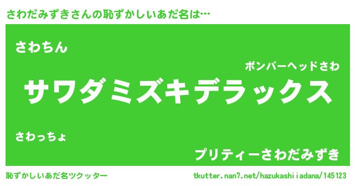 | ヘコむあだ名 | 『さわだみずき(笑)』『さわにゅー』 |