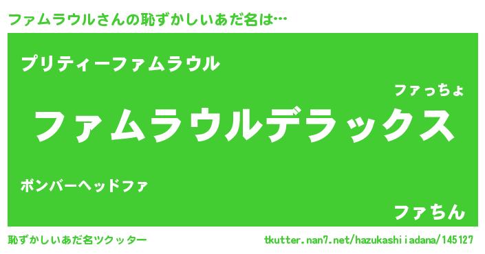 | ヘコむあだ名 | 『ファにゅー』『ファムラウル(爆)』 |
