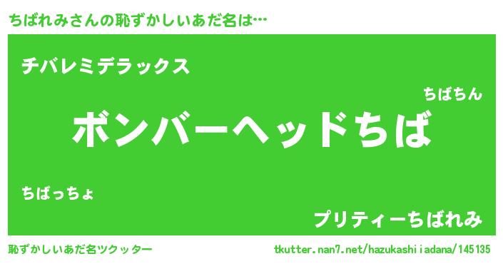| ヘコむあだ名 | 『ちばふぇ~』『ちばれみ(苦笑)』 |
