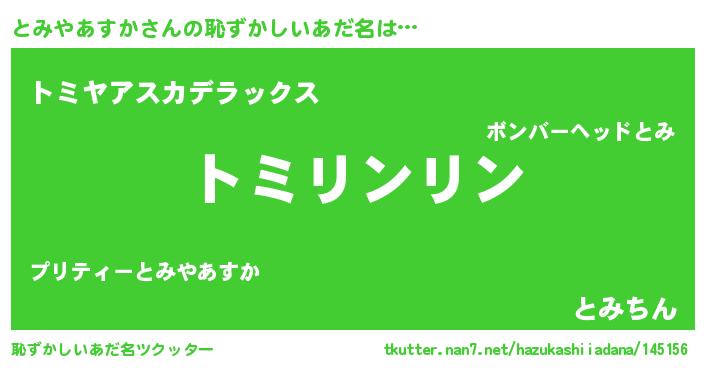| ヘコむあだ名 | 『とみ太郎』『とみやあすか(震え声)』 |