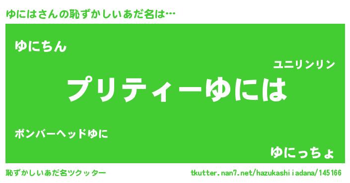 | ヘコむあだ名 | 『ゆににゅー』『ゆには(笑)』 |