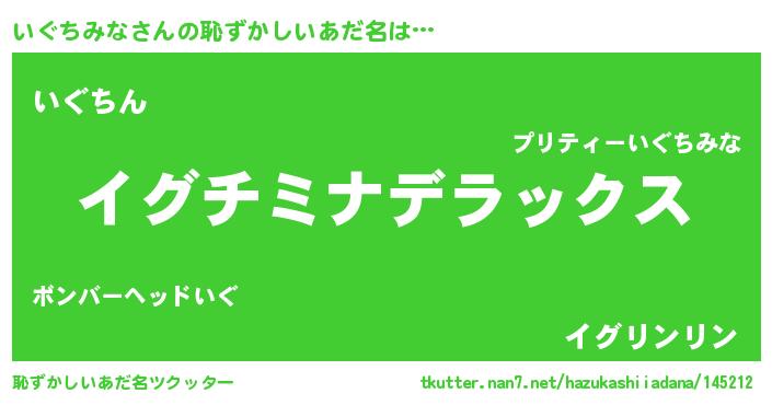 | ヘコむあだ名 | 『いぐちみな(小並感)』『いぐっぺ』 |