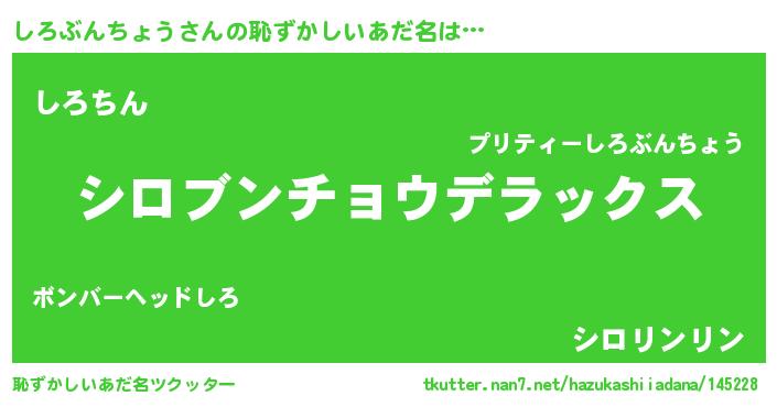 | ヘコむあだ名 | 『しろぶんちょう(苦笑)』『しろぷりん』 |