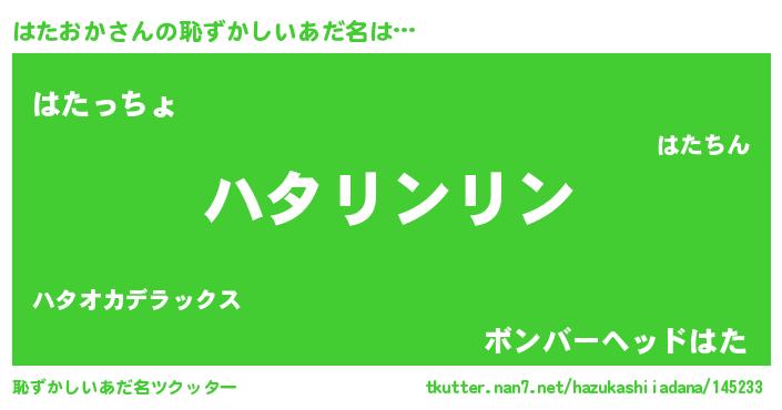 | ヘコむあだ名 | 『はたを』『つくし』『はたおか(笑)』 |