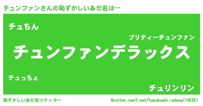 | 意味不明あだ名 | 『自称チュンファン』 |