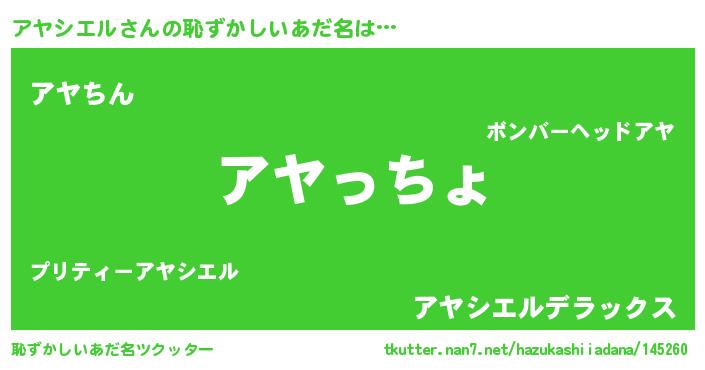 | ファンタジー風あだ名 | 『エターナルアヤシエルー』『ゼアヤトゥ』 |