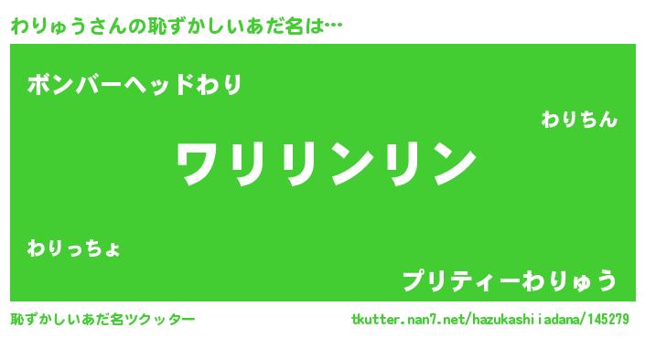 | 男性向けラノベタイトル風あだ名 | 『緋弾のワリュウ』 |