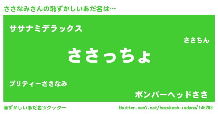 | 意味不明あだ名 | 『ささなみフォーエバー』『自称ささなみ』 |