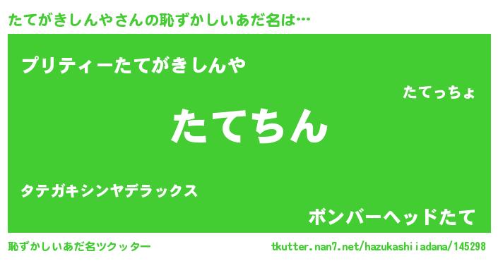 | ヘコむあだ名 | 『たてがきしんや(小並感)』『たてっふぃ~』 |