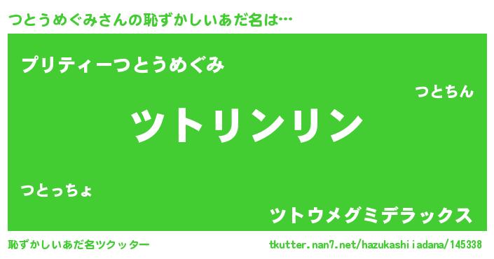 | ポケモン風あだ名 | 『ヒツトウメグミ』『ツトチュウ』 |