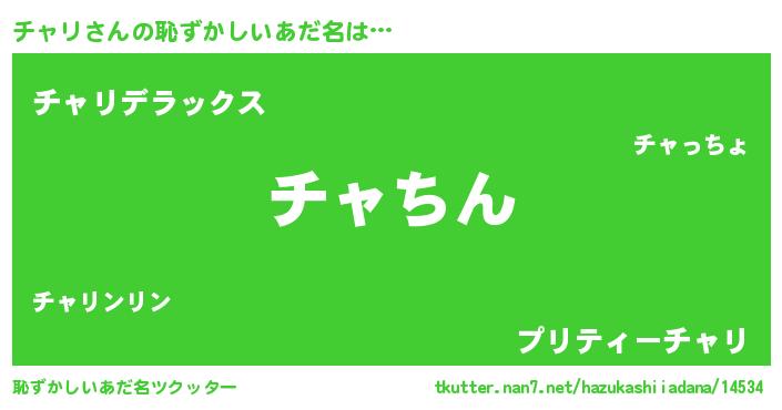 | ヒーロー風カッコイイあだ名 | 『仮面チャダー』『ネオチャリ』 |