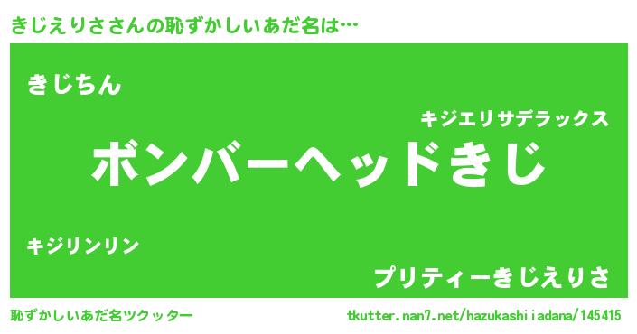 | 意味不明あだ名 | 『住所不定無職きじえりさ(89歳)』 |