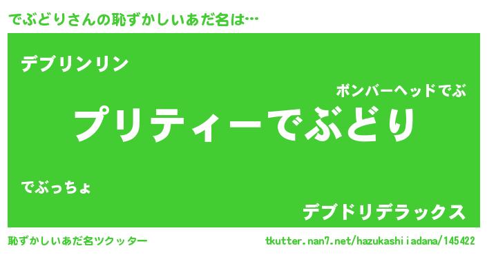| 男性向けラノベタイトル風あだ名 | 『でぶどり~年齢イコール彼女いない歴の魔法使い~』 |