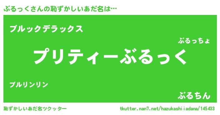 | 意味不明あだ名 | 『ペロリンぶるっく』『自称ぶるっく』 |