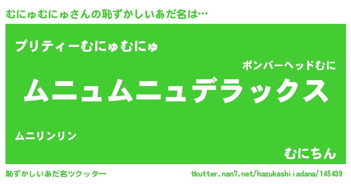 | ヘコむあだ名 | 『むにっふぃ~』『むにゅむにゅ(遠い目)』 |