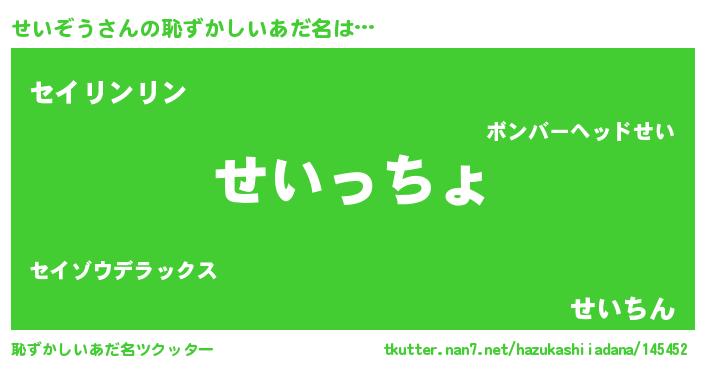| 女子向けラノベタイトル風あだ名 | 『せいぞうの雑貨屋さん』 |
