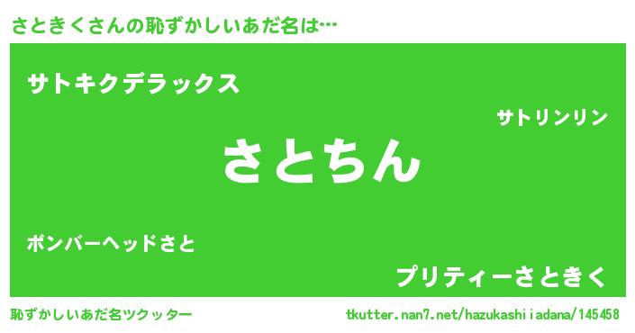 | 意味不明あだ名 | 『永久保存さときく』『自称さときく』 |