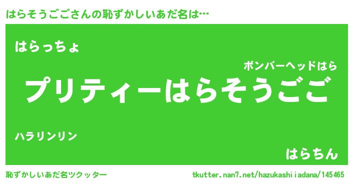 | 男性向けラノベタイトル風あだ名 | 『ハラソウゴゴアートオンライン』 |