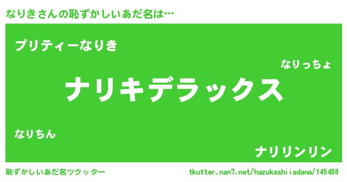 | 男性向けラノベタイトル風あだ名 | 『魔弾の王となりき』『緋弾のナリキ』 |