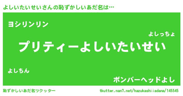 | ヘコむあだ名 | 『よしにー』『よしぷりん』 |