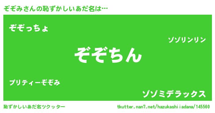 | ヘコむあだ名 | 『ぞぞみ(笑)』『牛乳』『ぞぞっぺ』 |