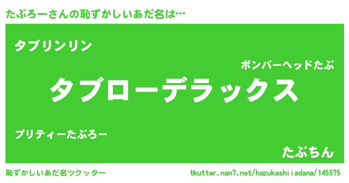 | ヒーロー風カッコイイあだ名 | 『超時空戦士タブロー』『幻影騎士タブ』 |